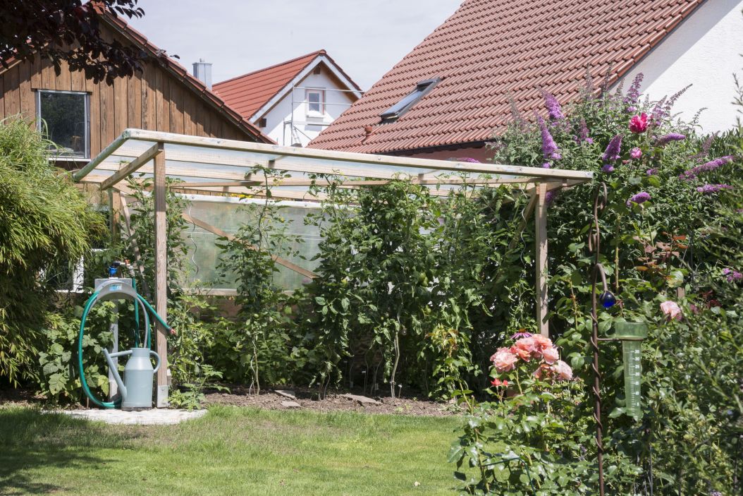 ![]() Terrasse an der Hausvorderseite gut eingewachsen |
