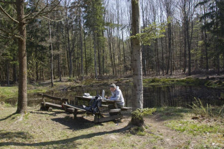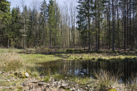 ![]() An der "Kuhtränke" kein natürlicher Weiher, sondern eine Lehmgrube aus dem 18.Jahrhundert diente als Wasserversorgung von Mensch und Tier, früher hieß er Himmelsweiher, ein ganz wunderbarer Fleck der Ruhe. |