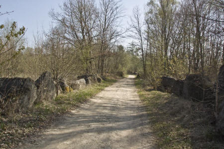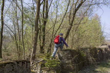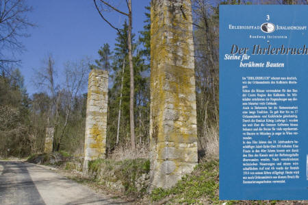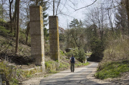 ![]() Am Steinbruch vorbei, mit noch alten Restmauern und Säulen |