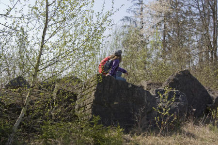 ![]() Im Schatten der Bäume an Felsklötzen vorbei lässt sich wandern... |