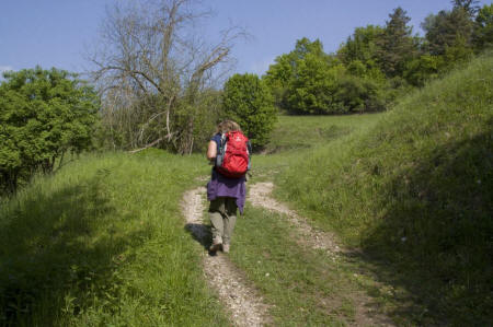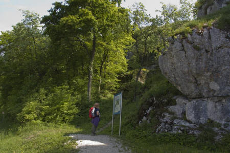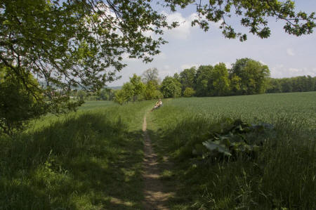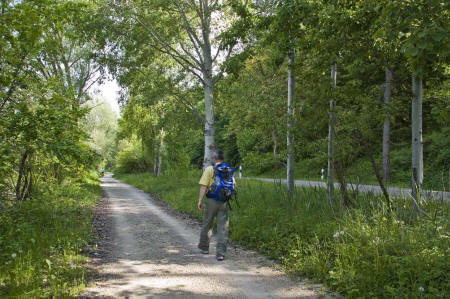 Und hier geht es lang, den Weg muss man sich mit Radfahrer teilen,oder man geht gleich auf der rechten Seite in den Wald. |