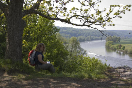 zur Weichselmühle am Donauufer. Dort nach rechts abbiegen und der Uferstraße