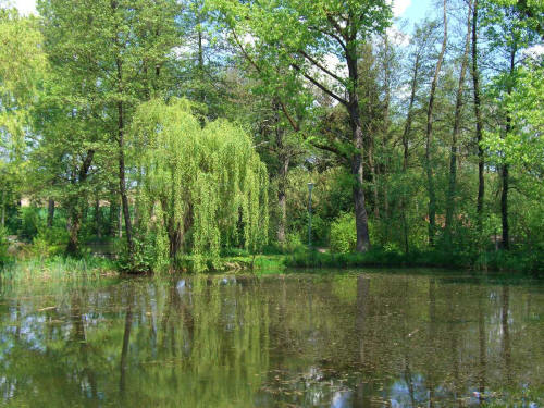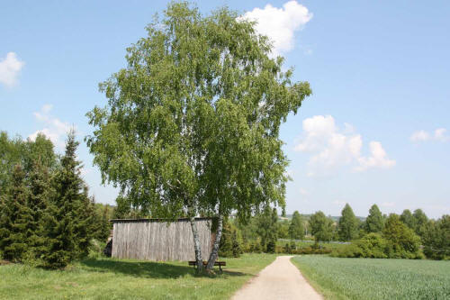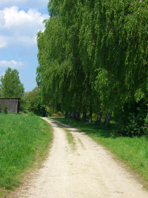 ![]() Eine Birkenallee führt zu den Marktweihern |