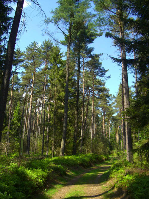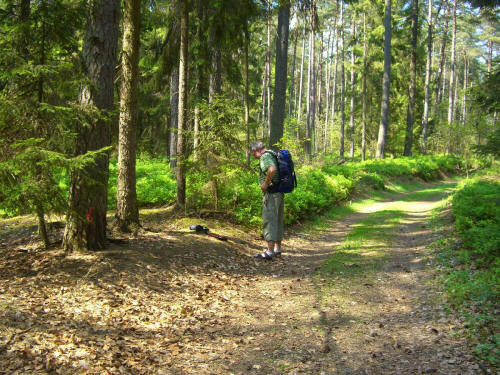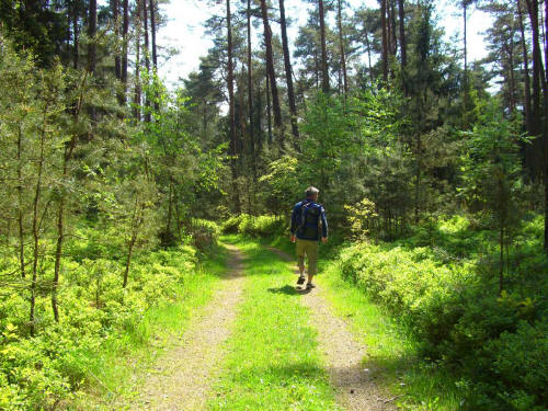Waldes ein. Die Wege sind zum großen Teil nicht befestigt. Es geht über